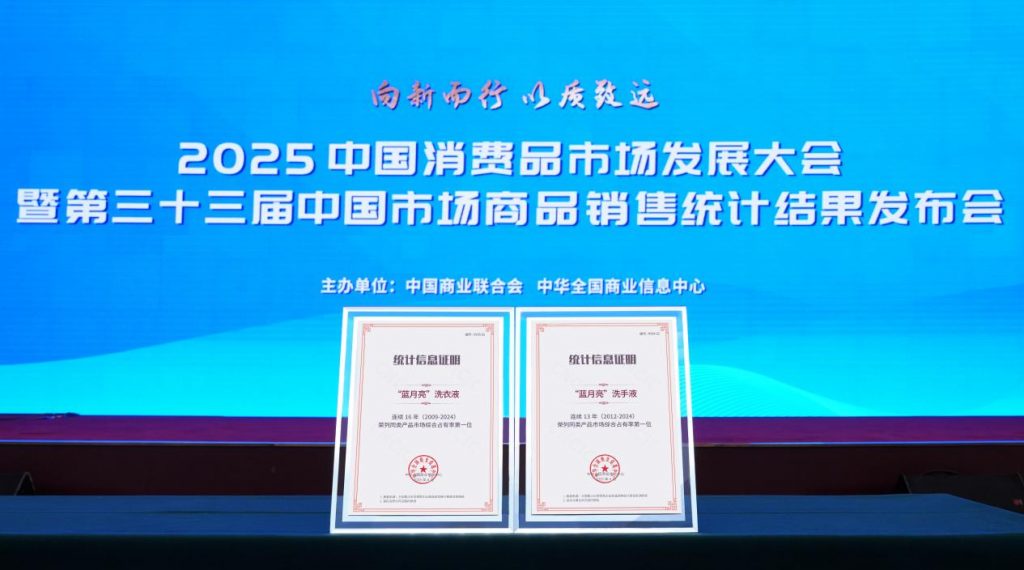 值得注意的是,此项统计自2009年起将洗衣液品类纳入其中,而蓝月亮自统计涵盖洗衣液品类的第一年起便始终位居榜首,是唯一获此奖项的品牌,始终保持领先地位。