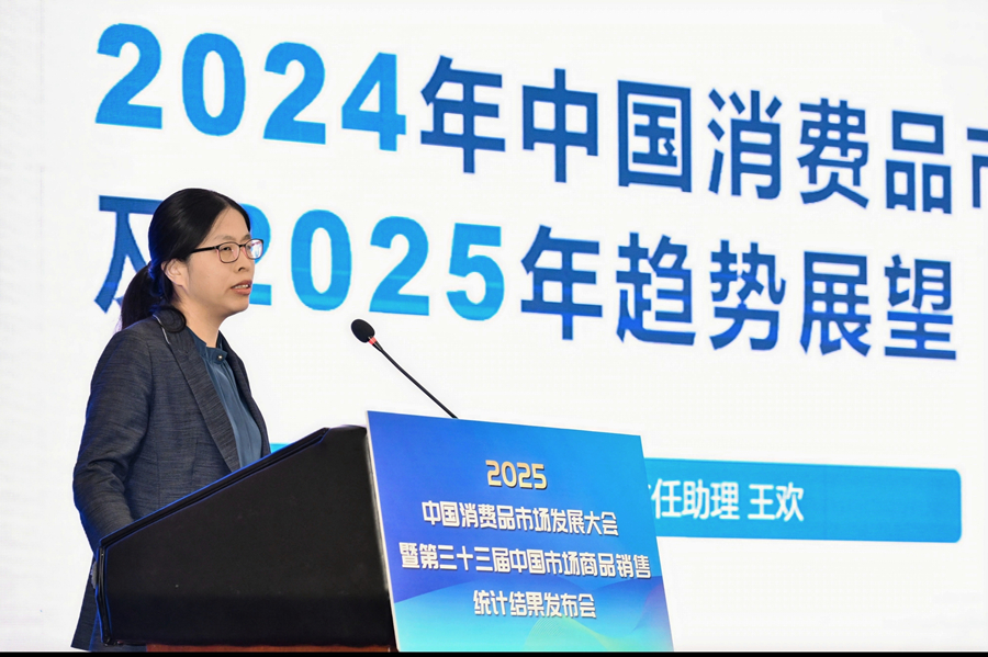 中华全国商业信息中心主任助理王欢在会上发布了2024年中国消费品市场运行情况及2025年趋势展望。王欢从2024年我国宏观经济运行情况、我国消费品市场运行情况、我国消费市场呈现出的主要特点、全国重点大型零售企业销售情况分析、2025年我国消费品市场发展环境及我国消费品市场发展趋势等六方面,多个维度的对消费品市场进入深入解读。她表示,在居民收入稳定增长、消费环境持续改善、消费场景不断创新、存量增量促消费政策协同作用下,我国消费品市场将持续优化结构、稳中有进,社会消费品零售总额预计增长5%左右。