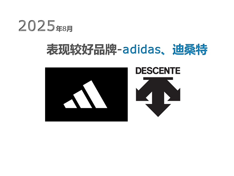 当前,运动服市场呈现出积极态势。运动服市场的消费者需求不再局限于基础的运动装备,而是追求那些技术过硬、设计出众,并能代表自己生活态度的产品。运动服产品价值呈现技术复合趋势,防水透气面料、碳板等专业科技与设计美学并重。同时,消费者愿意为能融入多种生活场景的通勤跑鞋、办公室瑜伽服等场景化特色产品支付溢价。2025年8月前十品牌中,adidas和迪桑特表现较好,市场综合占有率与上年同期相比分别提高了1.62和0.99个百分点。