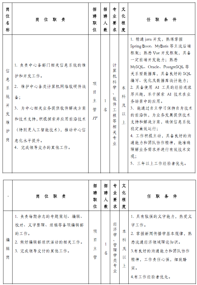 二、招聘岗位及要求