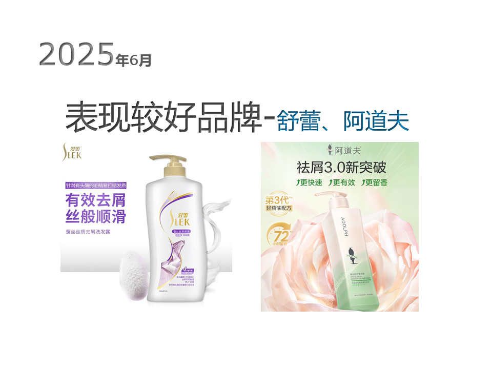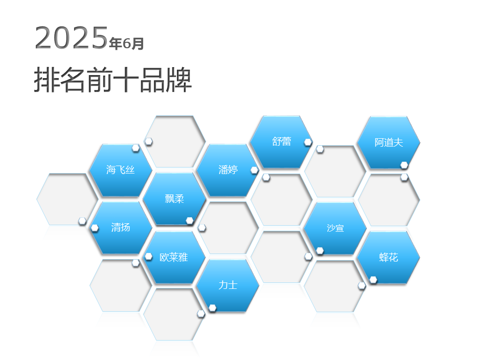根据中华全国商业信息中心的监测数据,2025年6月份全国重点大型零售企业(以百货商场为主)洗发护发品品牌前十位包括海飞丝、清扬、飘柔、欧莱雅、潘婷、力士、舒蕾、沙宣、阿道夫、蜂花,前十位品牌市场综合占有率合计为51.14%,与上年同月相比下降1.99个百分点,与上月相比下降1.79个百分点。