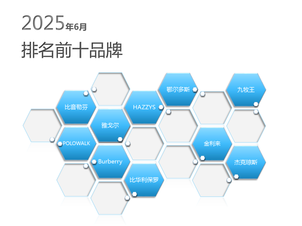 前十位品牌包括比音勒芬、雅戈尔、hazzys、鄂尔多斯、九牧王、polowalk、burberry、比华利保罗、金利来、杰克琼斯。6月份t恤衫市场前十位品牌市场综合占有率合计为17.55%,市场集中度低于上年同期0.53个百分点,与上月相比则下降了0.62个百分点。