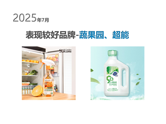 近年来,清洁洗涤产品作为家庭清洁、个人护理及公共卫生等领域的必需品,随着居民生活品质提升与消费理念的转变,市场需求已从单一的清洁功能逐步延伸至安全、健康与绿色环保。在“双碳”政策的引导下,消费者对产品成分和绿色环保属性的关注度不断增强,部分品牌顺应趋势,通过技术创新和产品升级实现多元化功能与性价比兼顾,有力推动了其市场综合占有率稳步提升。根据中华全国商业信息中心的数据,2025年7月前十品牌中,蔬果园、超能表现较好,市场综合占有率与上年同期相比分别提高了1.38和0.61个百分点。