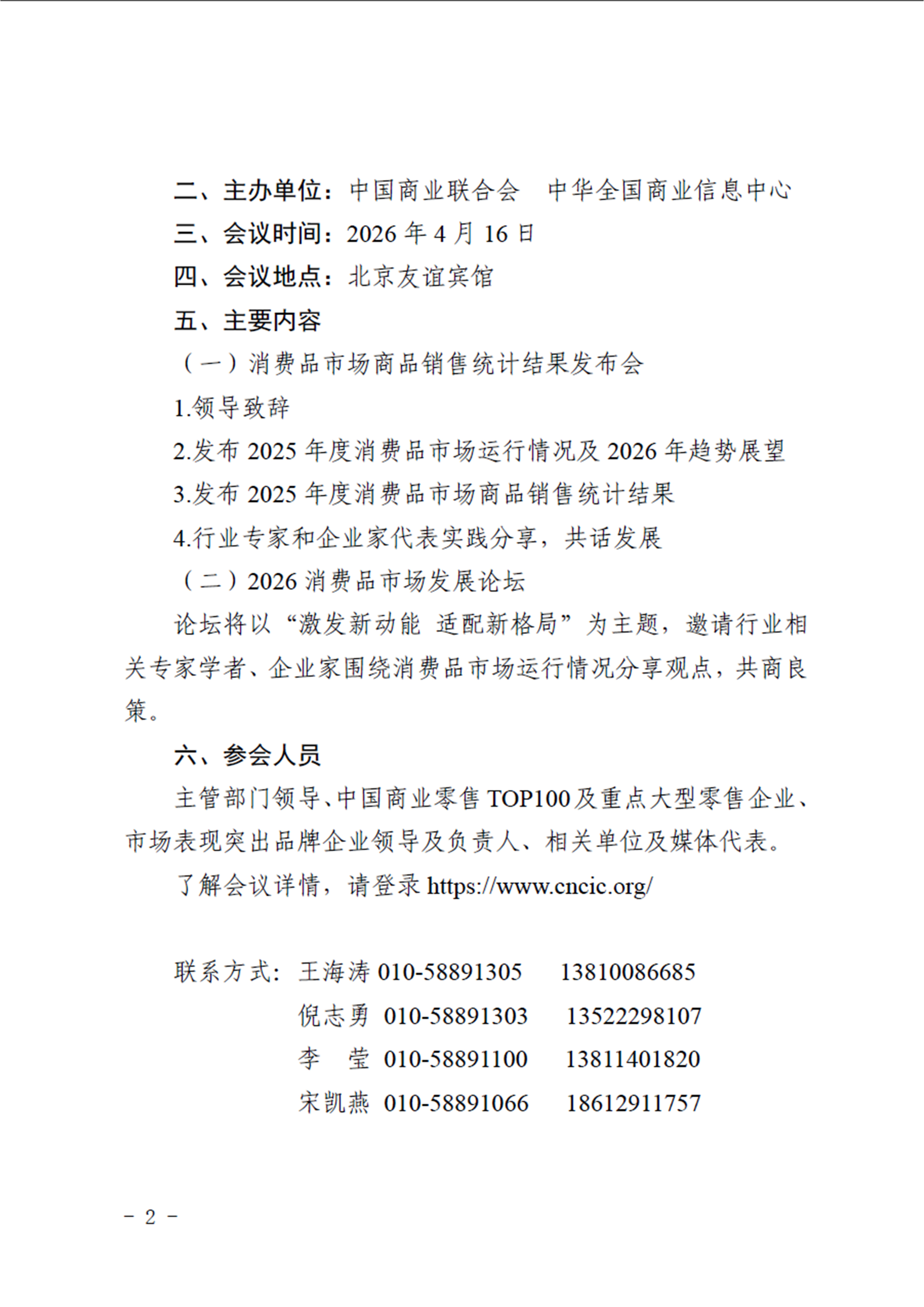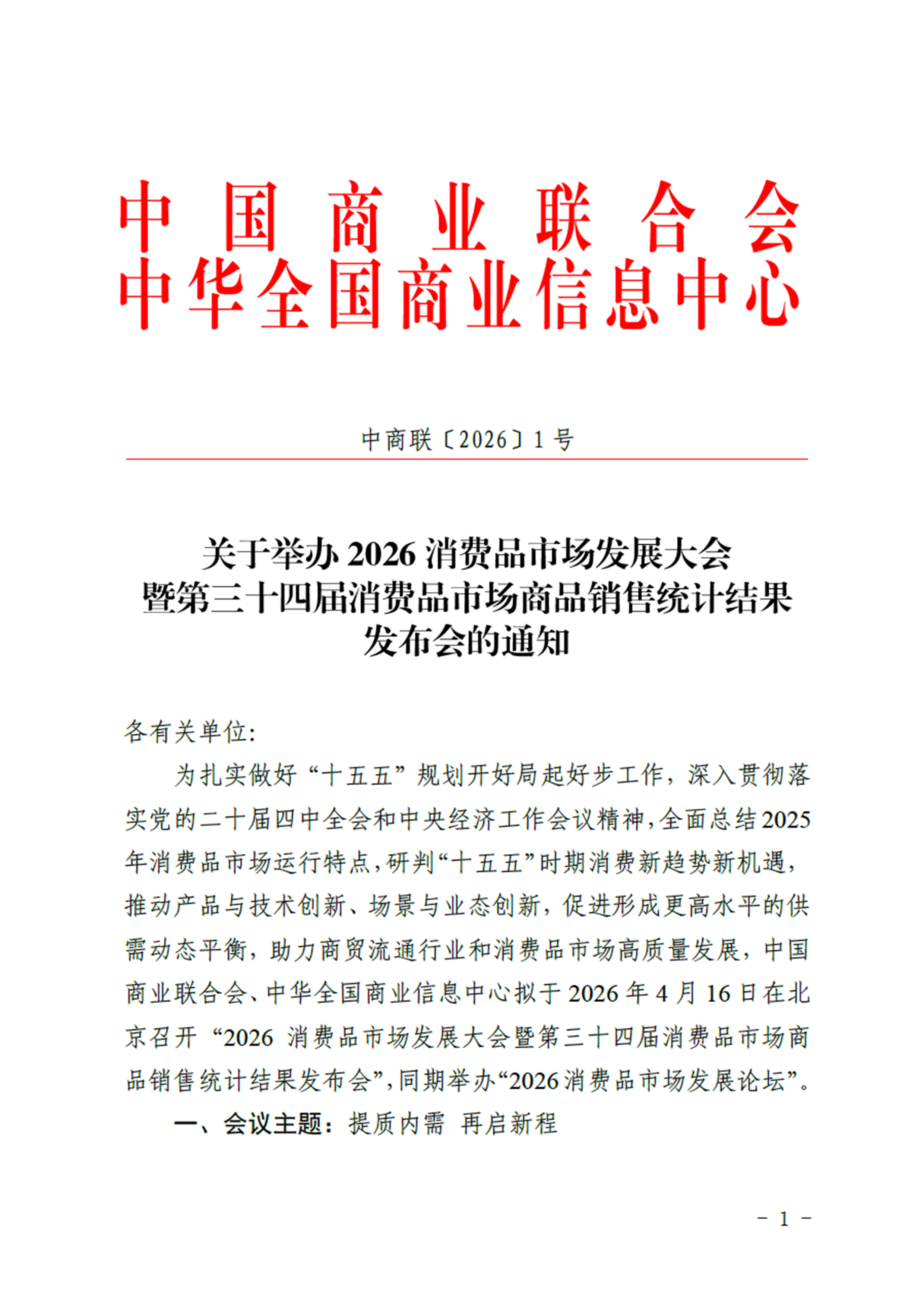关于举办2026消费品市场发展大会暨第三十四届中国市场商品销售统计结果发布会的通知 | 中华全国商业信息中心-凯发天生赢家